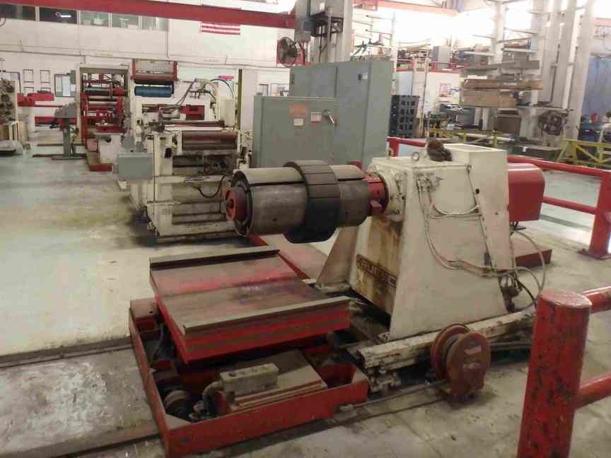 -Recoiler: 6,000# Capacity (1) - 12" Dia. x 24" Face Drum (1) - 16" Dia. x 24" Face Drum Drum has Hydraulic Expansion Hydraulic Pushoff Traversing Base 40 HP DC Drive Motor Drive-All 2 Speed Transmission -Hydraulic Power Unit: 3 HP AC Motor, 1725 RPM, 208-230/460 V Vickers Pump 15 Gallon Reservoir