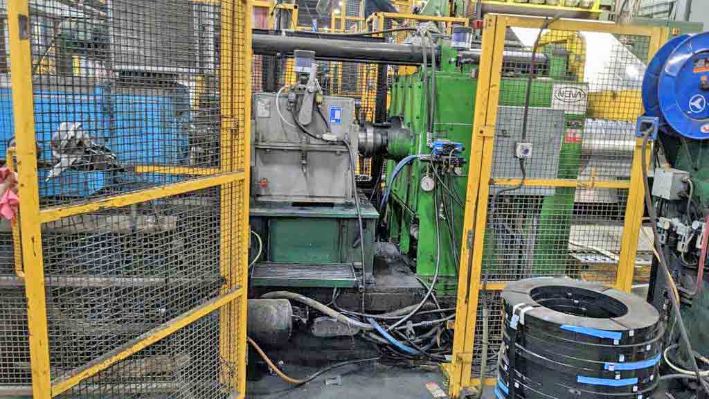 -Cone Type Uncoiler Capacity: 50,000 lbs. 40 HP AC Motor Feed-Up on each Head Disc Brakes Holddown Roll