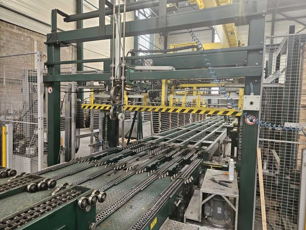 -Automatic Stacker: Length Stop Adjustment: Electromechanical - 24.6' max.(7.500mm max.) Width Stop Adjustment: Electromechanical Pallet Roller Table Adjustment: Electromechanical Pallet Supply: Lateral