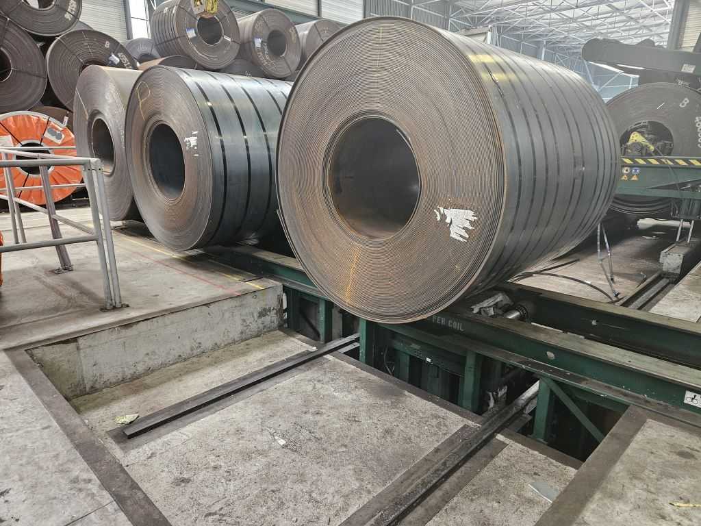 -Coil Car: Pit Type -Uncoiler: Mandrel Type Hydraulic Expansion Expansion Range: 18.5" - 20.5" (470 - 520mm) Coil I.D. Range: 20" - 24" (30", 33.5", 35.4" with Pads) Holddown Arm: Hydraulic Sliding Base: Hydraulic Outboard Mandrel Support
